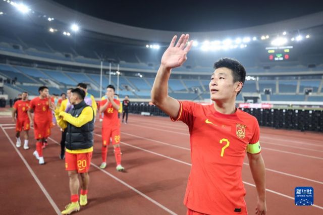 10月10日,中国队球员武磊(右)赛后向球迷致谢。新华社记者 潘昱龙 摄