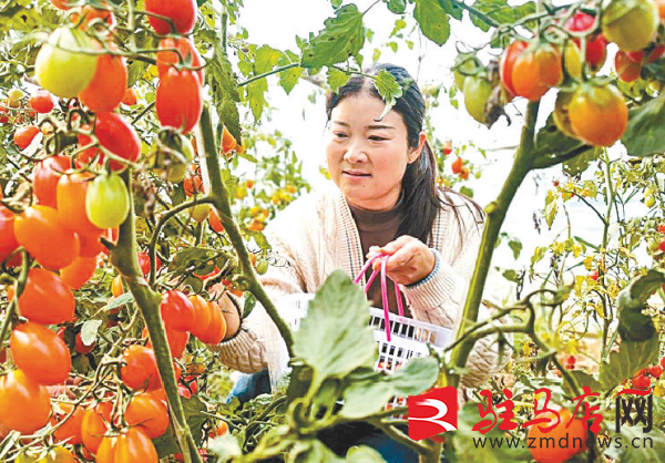 驻马店网讯(记者 方祥)近日,在泌阳县杨家集镇董庄村番茄种植基地,成串的小番茄挂满枝头,在此务工的村民们正忙着采摘、运送、分拣、装车,一派繁忙景象。