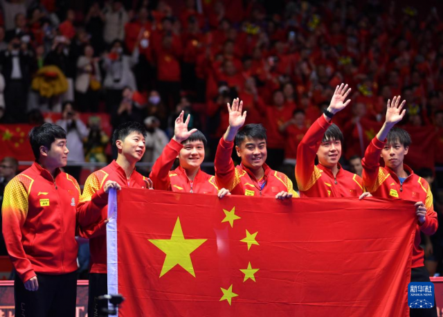 新华社韩国釜山2月25日电(记者谭畅、苏斌、冯亚松)发球得分,成功卫冕!马龙左手握拳,右手轻击台面,用一种稍显内敛的方式庆祝自己的第九个世乒赛团体赛冠军,并与世锦赛舞台告别。25日晚,2024年釜山世界乒乓球团体锦标赛男团决赛中,中国队以3:0战胜法国队,实现世乒赛11连冠。这也是中国男队第23次捧起斯韦思林杯。