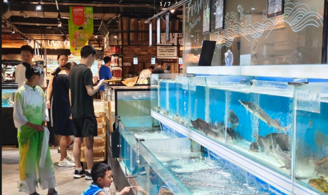 记者了解到,目前,不少大型超市已从传统的零售模式发展成集生鲜、百货、餐厅等功能于一体的综合卖场。原本要去饭店才能体验到的海鲜现场加工服务,如今超市也能提供。“海产品作为生鲜水产区的重要经营品类,现在推出现场加工及堂食后,让顾客在购买的过程中也能享受吃的乐趣。有些市民爱吃海鲜,但高端海产品的专业烹饪技术让他们下厨有了‘小难题’,我们想让更多海鲜美食者在超市就能享受到新鲜美味的海鲜大餐。”该超市有关负责人说。