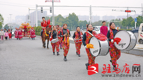 10月21日,驻马店市区街头,一男子身着古装骑马抬轿迎娶新娘。
