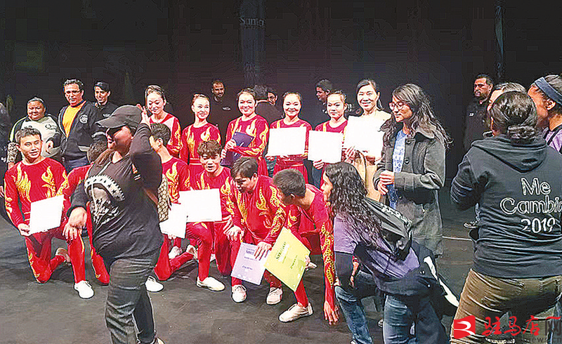 和国外观众互动 (图片由驻马店市汉秀杂技团提供)