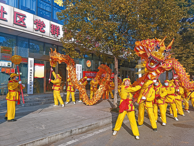 当日上午,位于风南社区门口的活动现场热闹非凡。演出在欢快的锣鼓声中拉开序幕,一群身着鲜艳服装的锣鼓队员精神抖擞,用激昂的鼓点敲出了新春的喜悦,也敲出了人们对美好生活的向往。