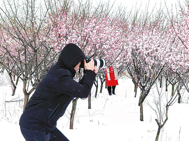 3月3日,在泌阳县王店镇高楼村百亩梅花园,粉红色的花蕾迎风傲雪、独自绽放,显得格外坚强与向上。游客纷至沓来欣赏美景的同时,打卡留念。