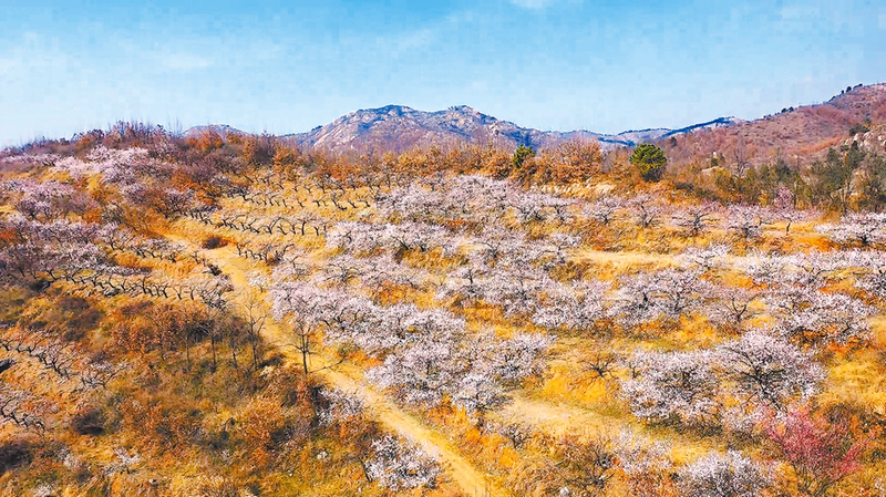 在郭山水库的春日画卷里,山桃花粉嫩娇俏,像少女羞红的脸颊,率先向人们宣告春天的到来,与杏花相映衬,为这方山水增添了无尽的生机与艳丽。