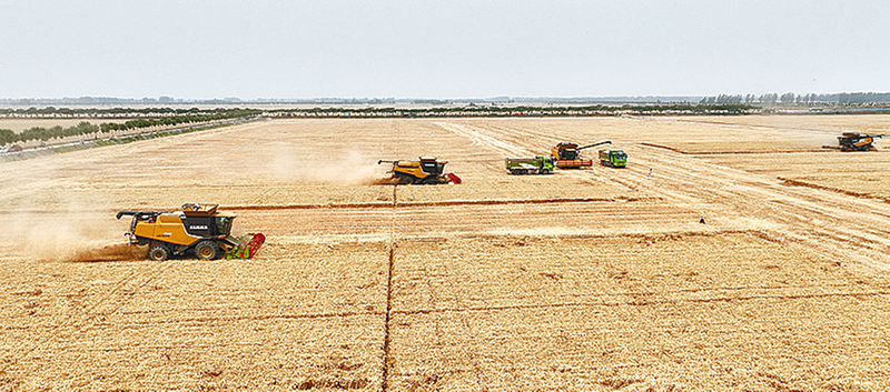 驻马店网讯(记者 弓华静)5月27日,在河南省驻马店市西平县老王坡高标准农田示范区,金黄的麦浪在微风中层层涌动,联合收割机编队在田间有序穿梭,呈现一幅壮观的现代化农业丰收图景。
