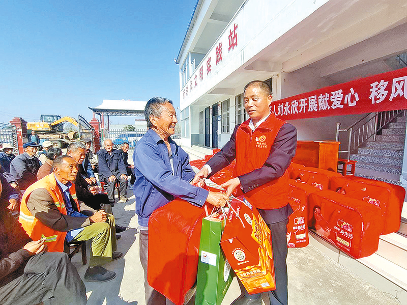 每年中秋节、重阳节,刘永欣都带队慰问易地搬迁安置小区、敬老院的孤寡老人及聋哑学校的师生等。去年重阳节,他们与任店镇孝心苑的老人们共度佳节,为老人们理发、唱歌唱戏、做心电图等。他们还去朗陵街道赵庄社区姚楼村抗美援朝老兵刘文禄等人家中嘘寒问暖。