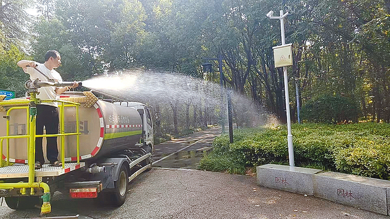坚持科学施策,精准开展浇灌作业。对主干道等大面积绿地使用洒水车高效作业,广场花坛等绿植造型区域实施人工定点补水。该中心启动应急补水方案,利用非饮用水源对市区绿植进行灌溉,形成洒水车喷灌、地下灌溉系统浇灌与人工作业喷洒相结合的系统化抗旱养护体系。同时,市园林绿化中心密切关注天气变化,加强日常巡查监测,全力以赴打好抗旱保绿持久战,守护城市绿色生命线。