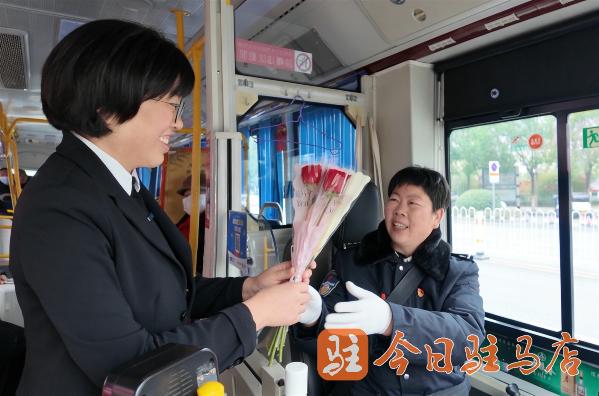 2026年3月7日,在“三八”国际妇女节来临之际,驻马店市公交公司在天中老街公交站精心组织了一场温馨的宣传活动。活动以“致敬‘她’力量,美好‘诚’载者”为主题,通过向女车长和女性乘客现场献花的方式,礼赞在平凡岗位上默默奉献的女性劳动者。