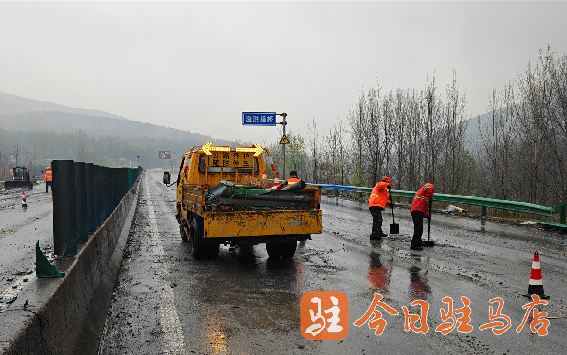 事故发生后,任店道班养护人员在进行公路巡查时发现险情,并及时上报。驻马店市公路部门第一时间接到险情报告,迅速启动应急抢险预案,组织任店道班养护人员携带抢险工具、机械设备,于当日清晨冒雨奔赴事故现场,开展紧急抢险作业。